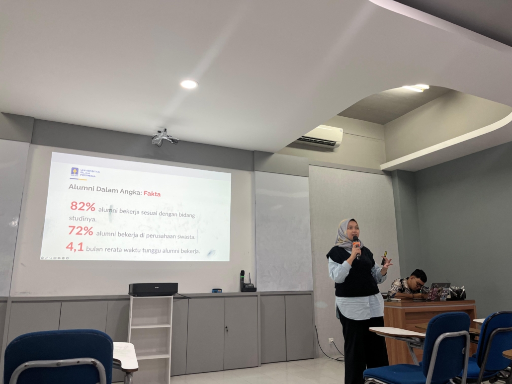 Lebih lanjut, Ibu Dian memaparkan teknik membuat Curriculum Vitae (CV) yang efektif, termasuk perbedaan antara do’s and don’ts dalam penyusunan CV serta bagaimana menyesuaikannya dengan sistem ATS (Applicant Tracking System) yang kini banyak digunakan oleh perusahaan. Peserta juga mendapat panduan langsung tentang strategi menghadapi wawancara kerja, termasuk cara menjawab pertanyaan menggunakan metode STAR (Situation, Task, Action, Result) agar jawaban lebih terstruktur dan berkesan.