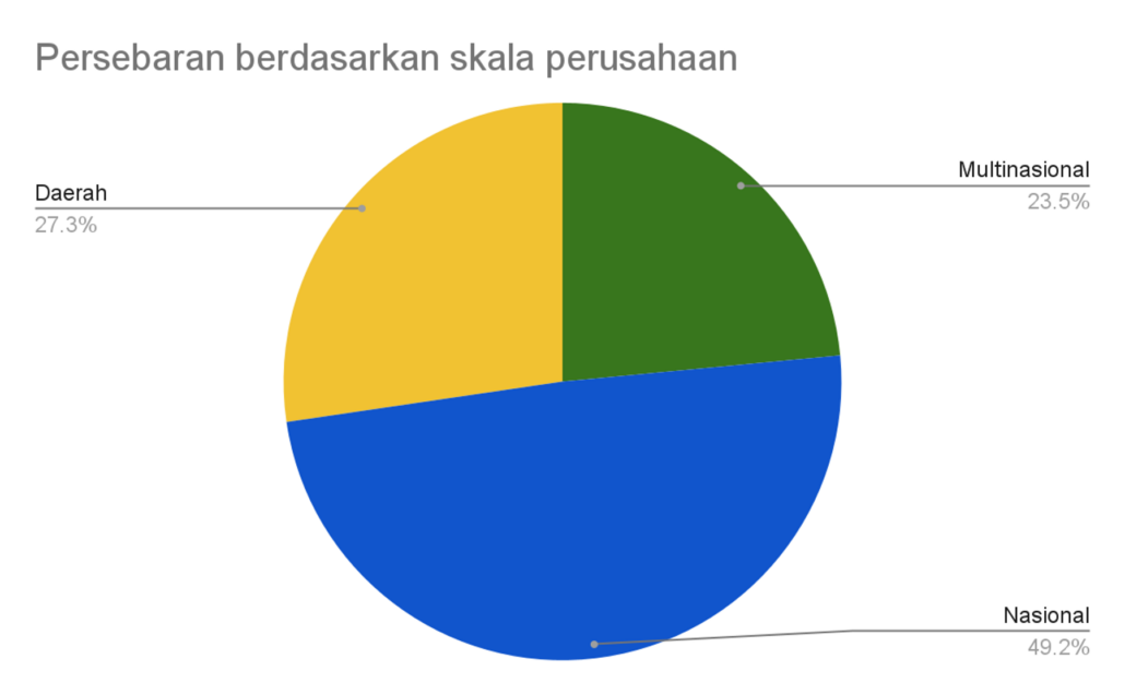 Selain di perusahaan multinasional, lulusan S1 Akuntansi UII juga terserap di berbagai skala perusahaan. Selain 23,50% di perusahaan multinasional, sebanyak 49,18% lulusan bekerja di perusahaan nasional dan 27,32% di perusahaan lokal atau wilayah.