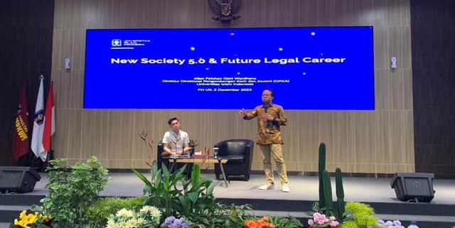 Beliau menegaskan bahwa masa depan profesi hukum tidak lagi terbatas pada peran sebagai lawyer. “Masa depan hukum, profesinya tidak hanya sebagai lawyer, tetapi berkembang,” ujarnya. Menurut beliau, perkembangan legal technology telah melahirkan berbagai peluang kerja baru di bidang hukum. Beliau juga menjelaskan bahwa AI kini mampu mengerjakan document review, legal analytics, hingga contract drafting. Digitalisasi tersebut dinilai mengubah cara belajar mahasiswa hukum secara signifikan.