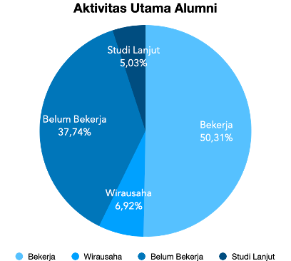 Berdasarkan data yang dihimpun, sebanyak 50,31% alumni telah bekerja, 6,92% memilih berwirausaha, dan 5,03 % melanjutkan studi ke jenjang yang lebih tinggi. Sementara itu 37,74% alumni tercatat belum bekerja dan sedang mempersiapkan diri atau mencari peluang kerja. Data ini menunjukkan bahwa setengah dari lulusan S1 Informatika telah terserap di dunia kerja, dibuktikan dengan rata-rata Indeks Prestasi Kumulatif (IPK) sebesar 3,54 dari skala 4,00. Pencapaian akademik ini menjadi salah satu faktor pendukung kesuksesan para alumni dalam meniti karier maupun melanjutkan studi.